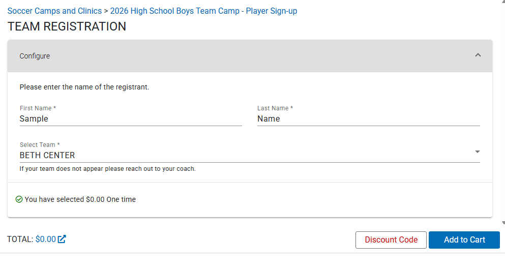 Click here to register – Select Team Registration